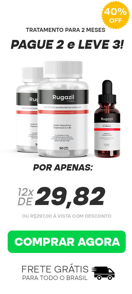 Desenvolvemos o Rugazil com uma fórmula inovadora que incorpora uma tecnologia premium e importada, elevando a absorção pelo organismo a um novo patamar. Com ingredientes premium, nosso produto proporciona à sua pele um toque aveludado, tornando-a mais lisa e revitalizada. Experimente a mega hidratação 3D que vai além das expectativas, garantindo resultados visíveis já nas primeiras semanas de uso.